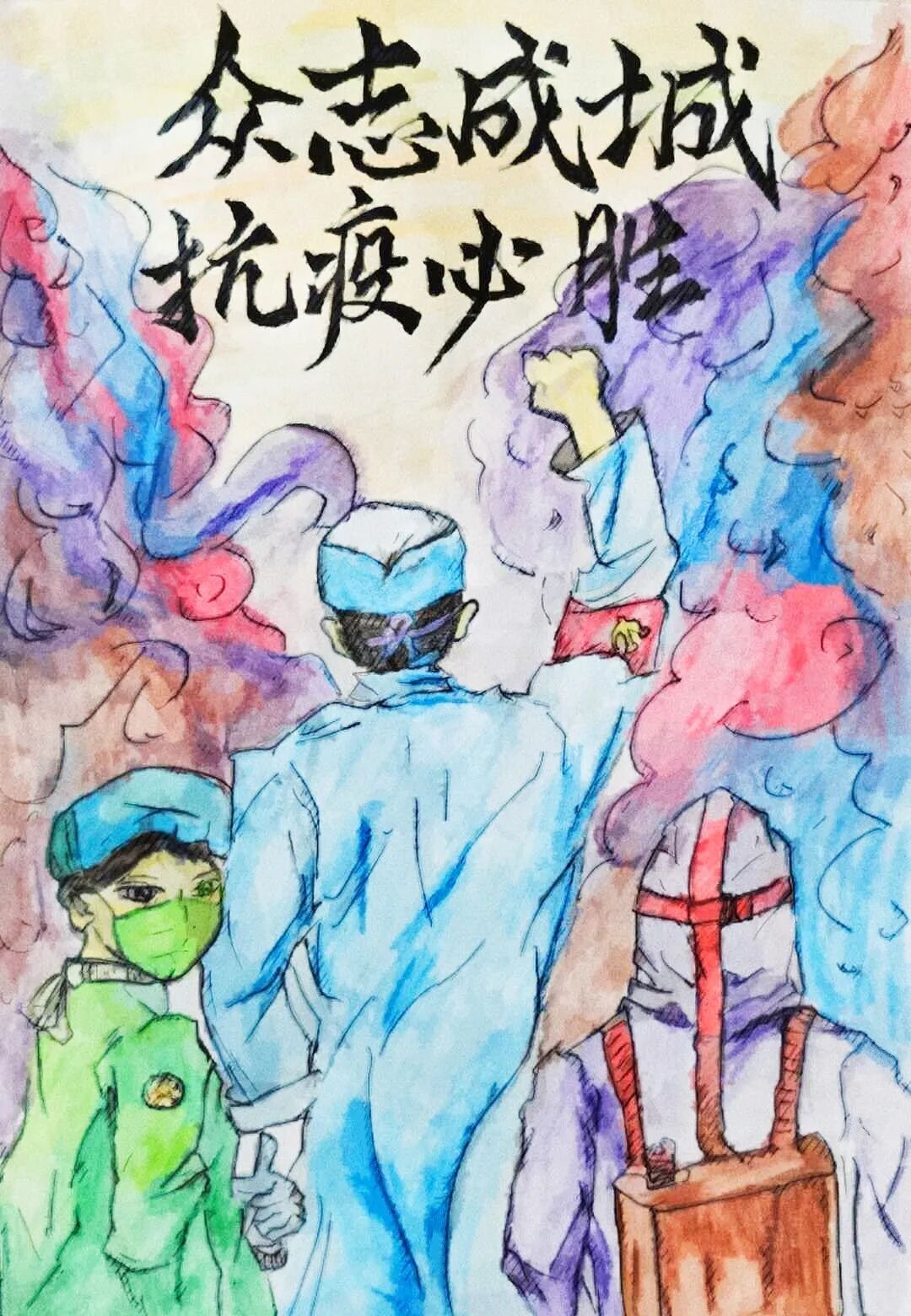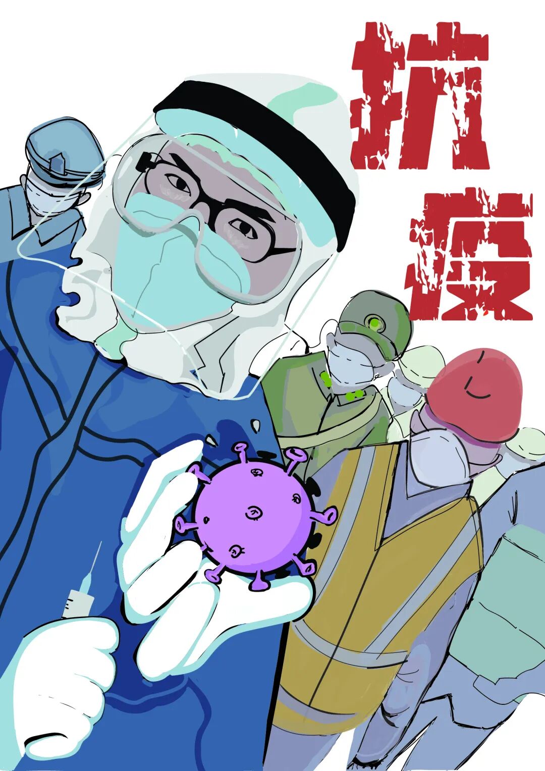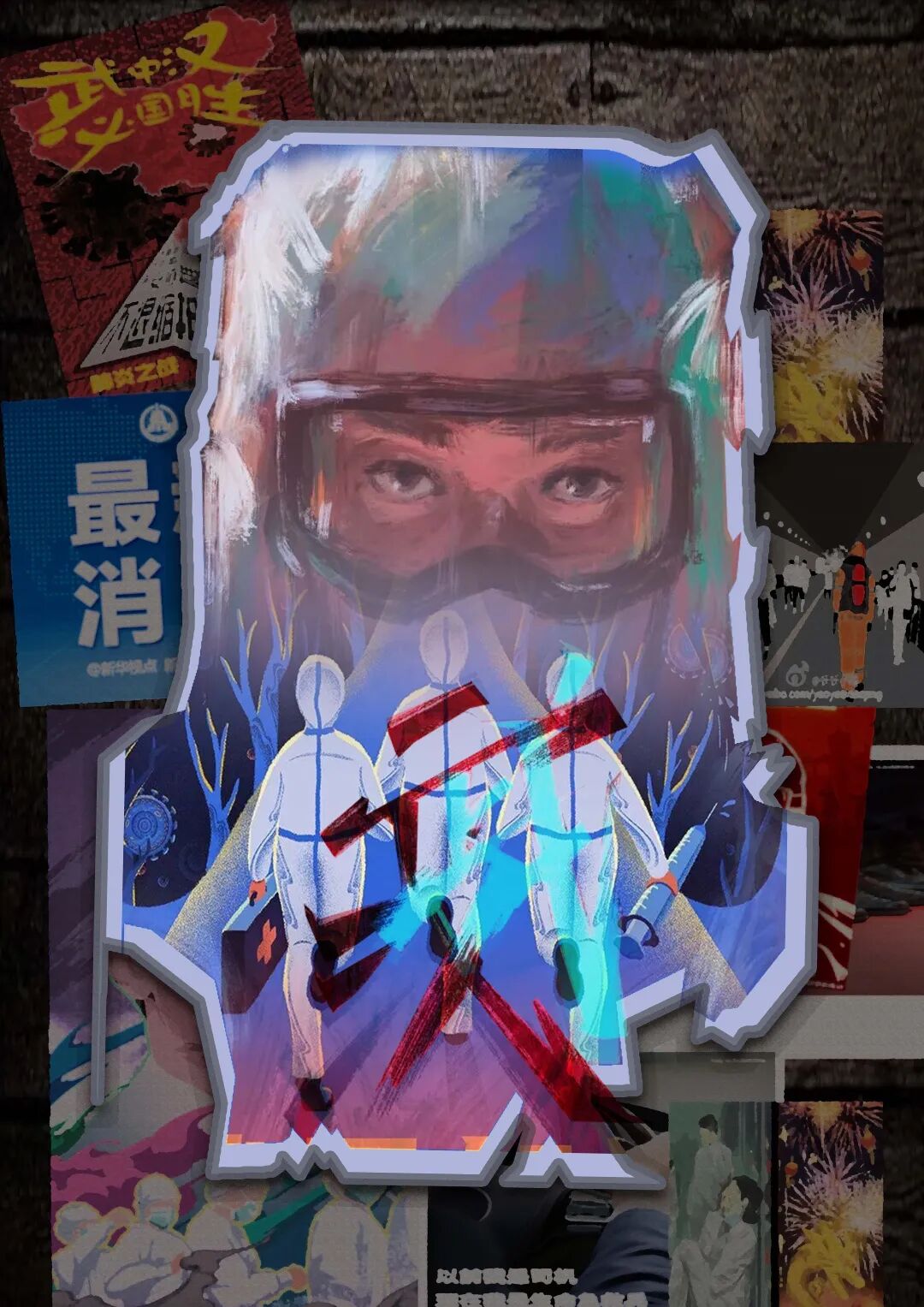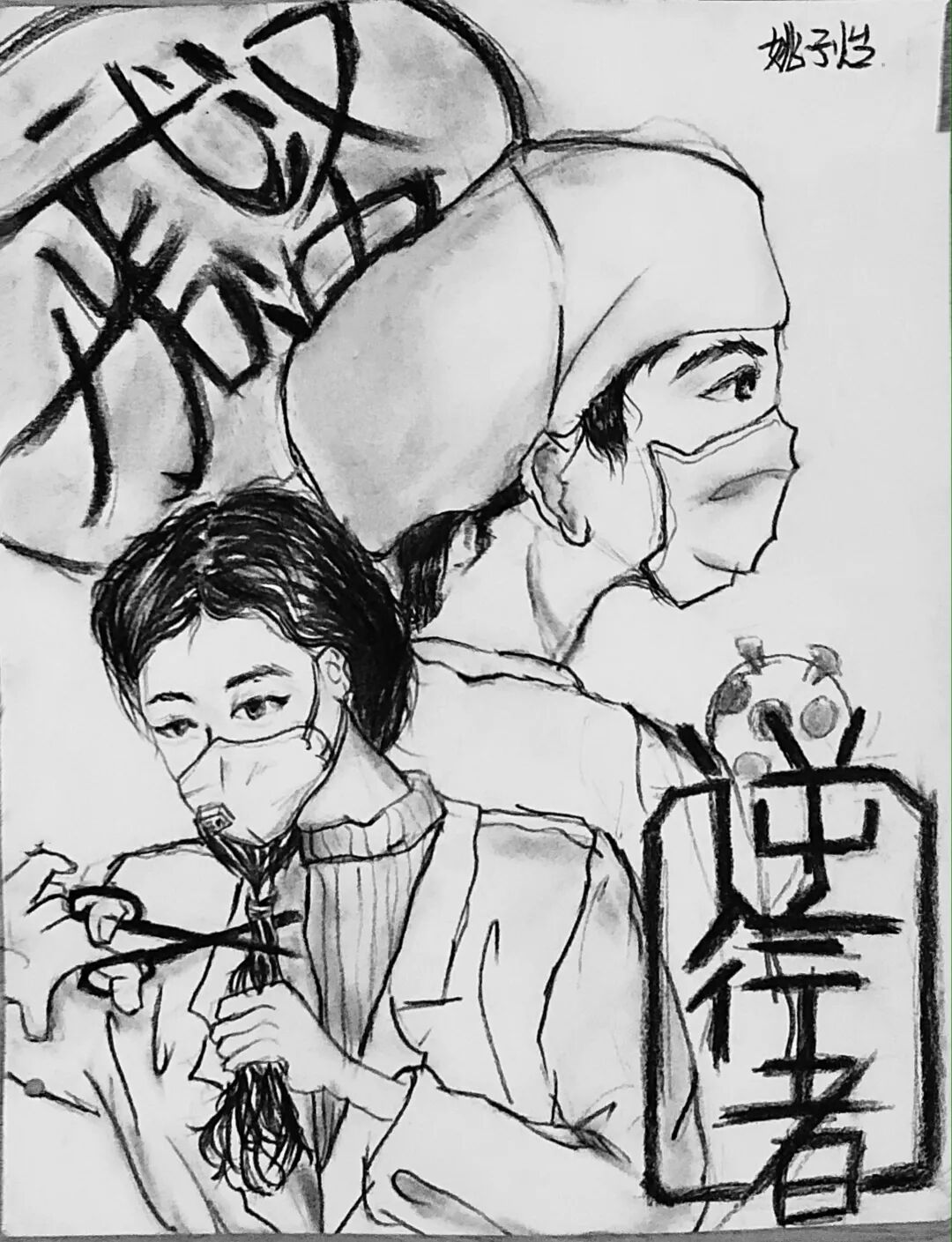 创作着抗击疫情的绘画、海报作品