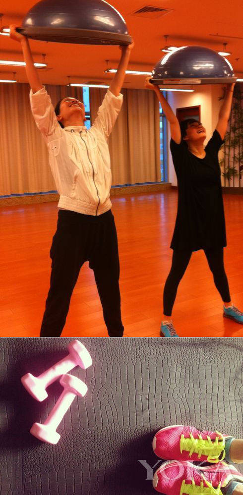 孙俪举个锅?难道还有健身锅?不过终归是天秤座,健身房粉嫩的装备也不能少。