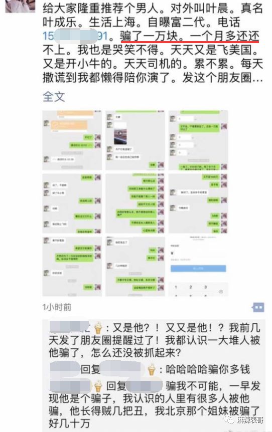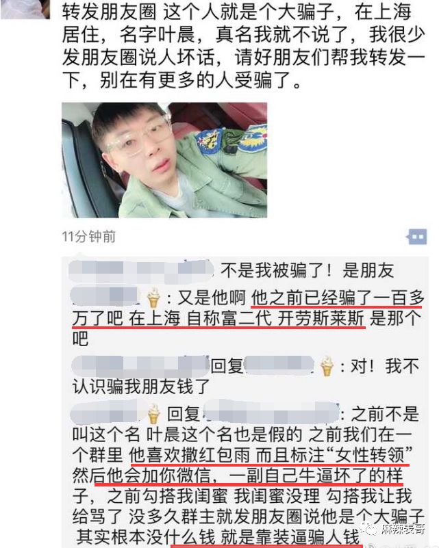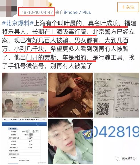 2018年10月的时候,网上就有人曝光他的照片,说他租着劳斯莱斯,长期在上海行骗,骗了几百人,大到几百万,小到几千块。