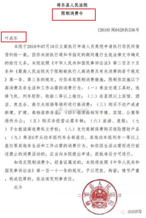 也不知道他到底骗了多少人,叶成乐还被将乐县人民法院限制了消费,时间是去年7月份。