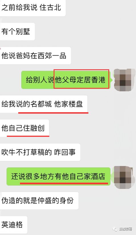 有时候也撒谎自己父母住在香港,说自己家有很多楼盘,还有酒店。