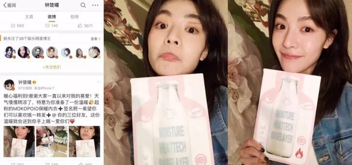 何穗在微博上推荐的这款Moko Poio莫可佩尔新版牛奶美肤衣,就是传说中集“保暖+美白+保湿”于一体的保暖内衣。
