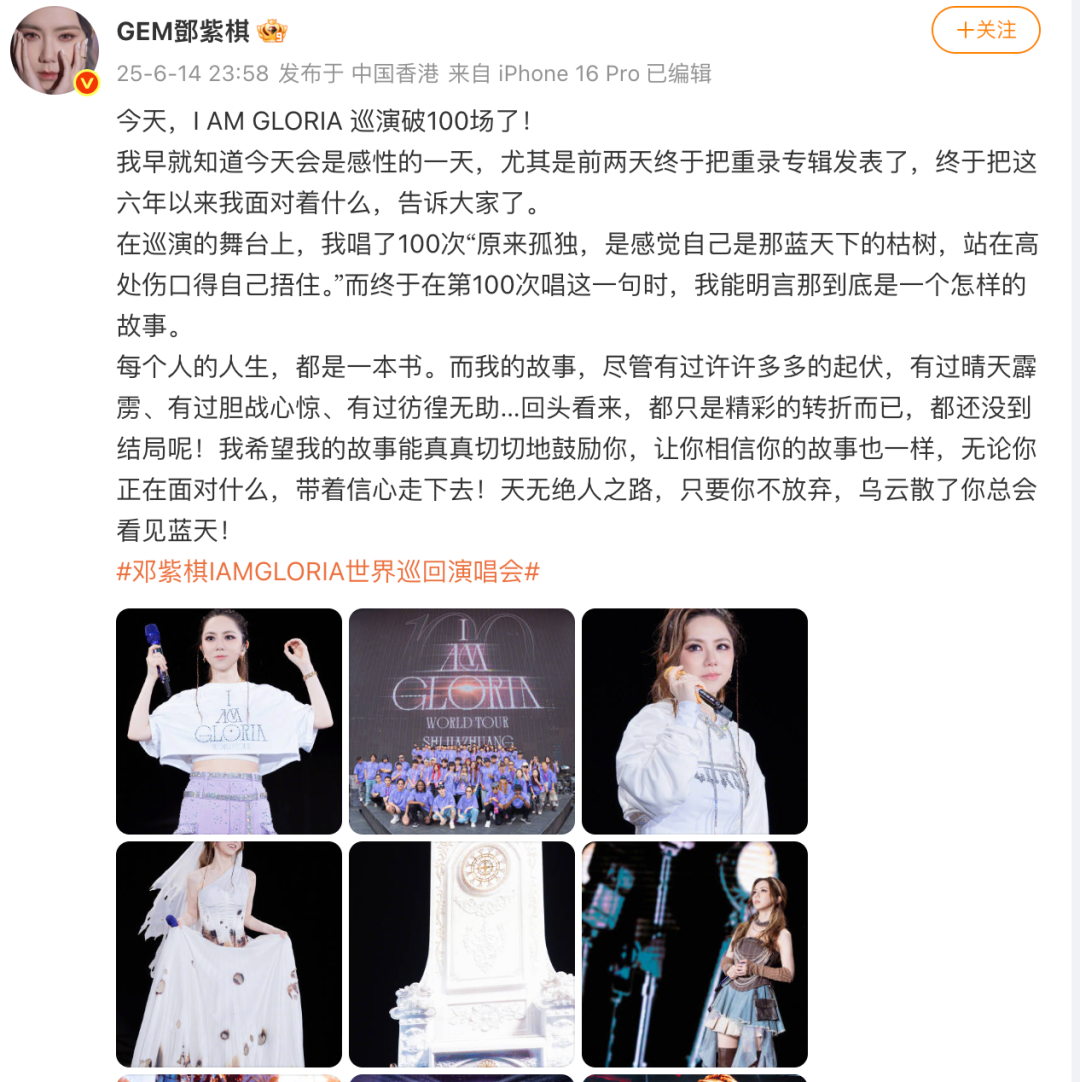 6月14日深夜,知名歌手邓紫棋在社交平台发文,全文如下: