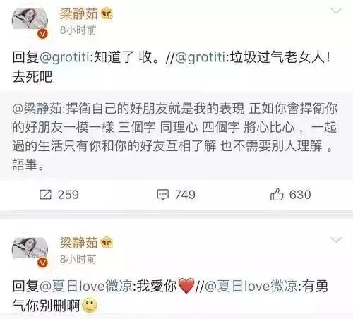 没想到这样的站队给梁静茹带来的后果是遭到网友的谩骂。