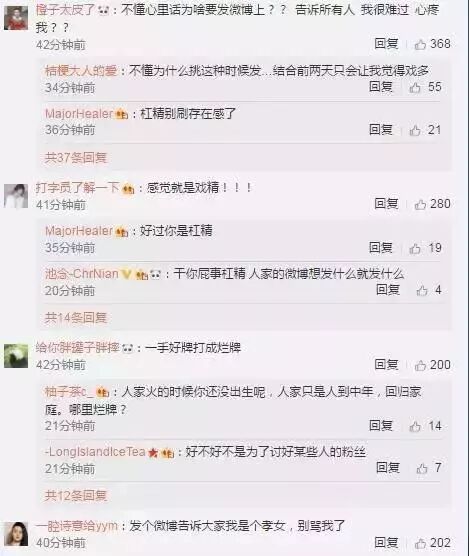 不知道大家在自己面对各个方面的压力时,没有依靠的情况下,哭或者是喝酒等方式来缓解自己的压力。在微博上这样公开表达自己对父亲的思念可以,但是在这样的情况下,不免是给自己在加戏了。