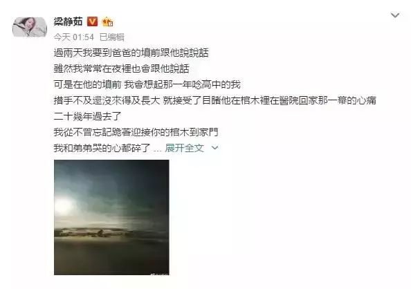 不过估计梁静茹的父亲在世应该会阻止梁静茹去做这样的事情吧,因为真的想挺自己的朋友,大可在私下聚会的时候来安慰自己的朋友,没有必要通过微博这样的平台来表明自己的“真心”。