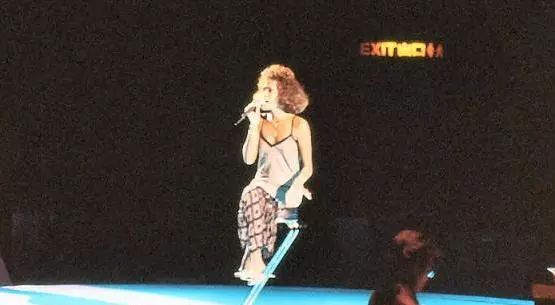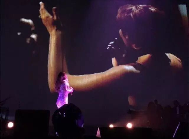 ▲ 惠姨已乘黄鹤去,此地空余牛本山,知道老牛为啥谁都不know么,因为配得她know上一know的diva,已经不在人间好几年了呀!图为牛姐在演唱会上与惠姨隔空对唱,曲终人散,回头一瞥……