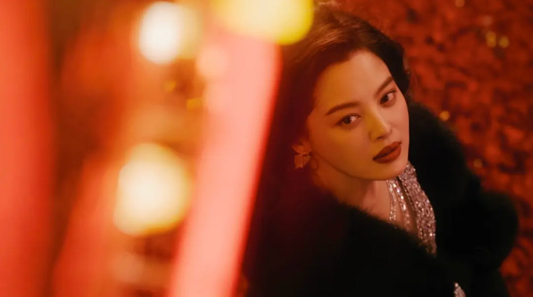 剧中的李李,华服加身,仿佛是她战斗的铠甲,她走路带风,说话一针见血,透着一股江湖式的狠绝。我最喜欢的是在剧中,李李与阿宝在火锅店吃羊肉聊天的几场戏,在与阿宝的极限拉扯之中,两人说的话真真假假,彼此试探。一开始辛芷蕾的表演设定是“埋头苦吃”,后来王家卫亲自上阵示范,只允许她用筷子蘸一点麻酱吃,时不时喝上一口酒,“你是来谈生意的,要优雅。”在辛芷蕾看来,出演李李就像是学习了另一种自己过去并不熟悉的武功秘籍,不是只有一种办法可以抵达彼岸。
