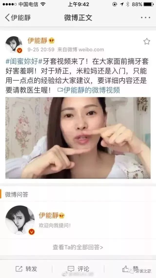 还有大量的明星发表微博传授整牙经验和给自己带来的改变