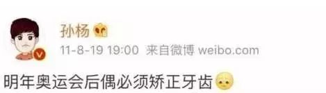 孙杨自己也说过对自己外形基本满意,除了牙齿,还在微博发下誓言,说要赶紧矫正牙齿