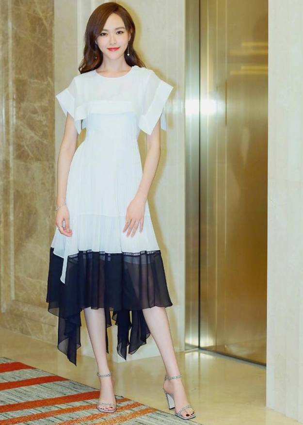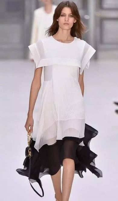 这件是CHLOE的2017春夏高级成衣系列,黑白拼接款,娜娜啊,咱能换个发型不?