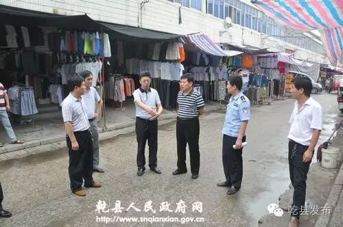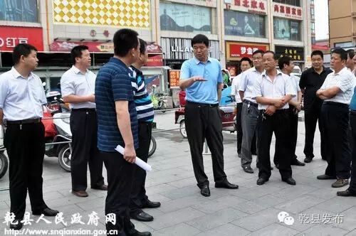 7月13日下午,县长谢军带领双创办、工商局、食药局、交警大队等单位负责人,到城关街办机关、灯塔十字、乾县客运站、三眼桥大市场、高速车站等处,检查指导环境卫生整治工作。