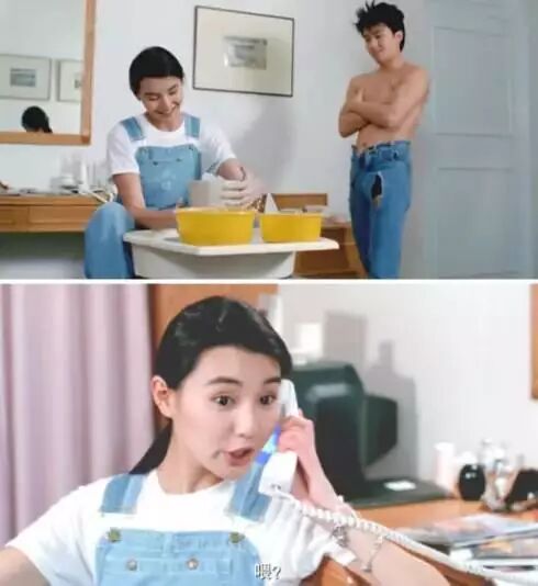 牛仔背带裤在电影中的出镜率也是极高,张曼玉出演的《家有喜事》,白T+背带裤,纯真的像个孩子。