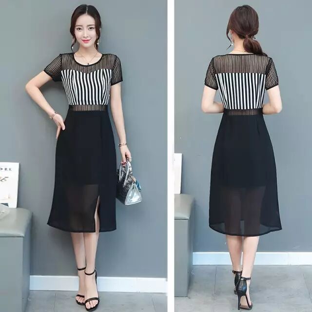 连衣裙针织条纹单件2017年夏季时尚中长款气质显瘦