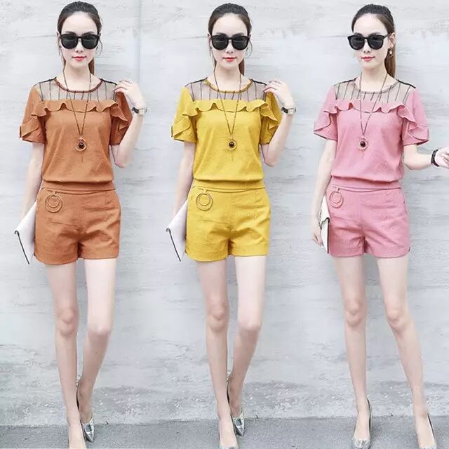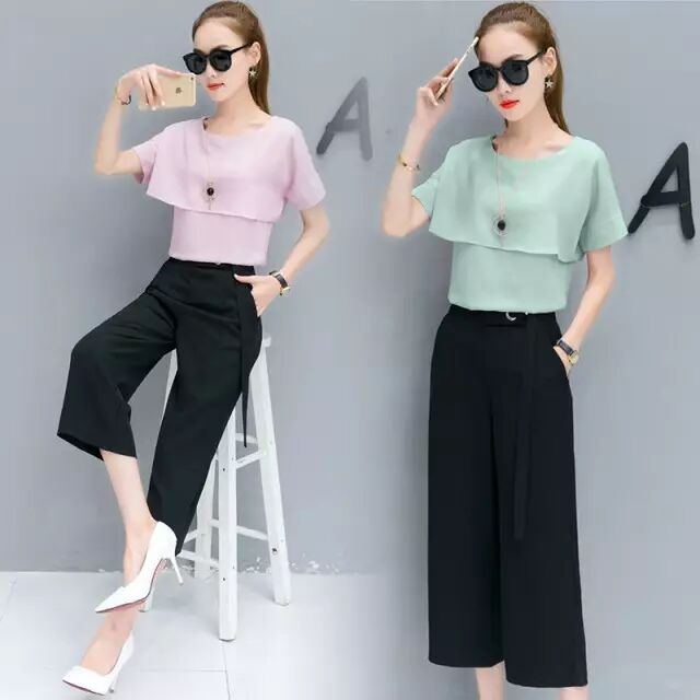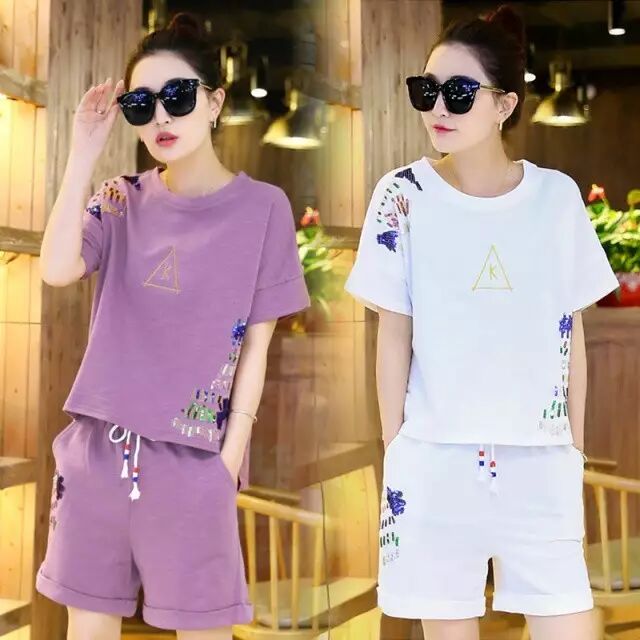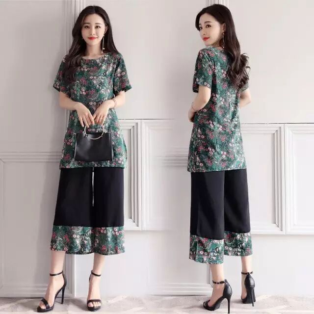 套装/套裙2017年夏季时尚气质潮流两件套印花蕾丝宽松优雅气质