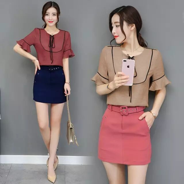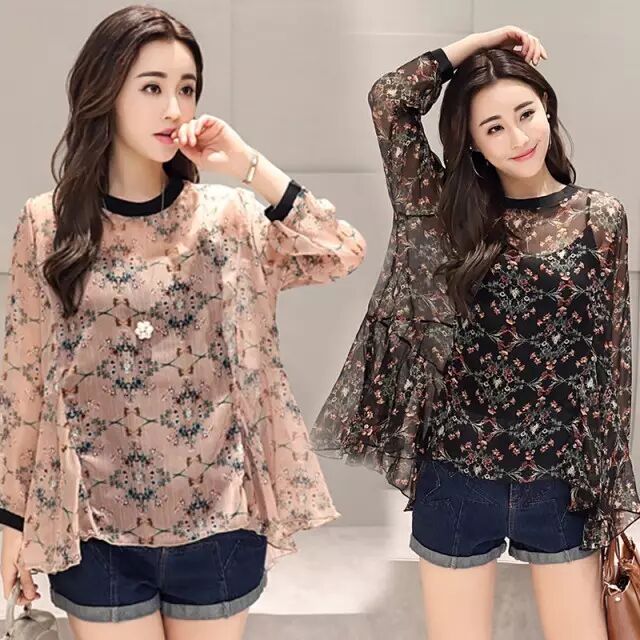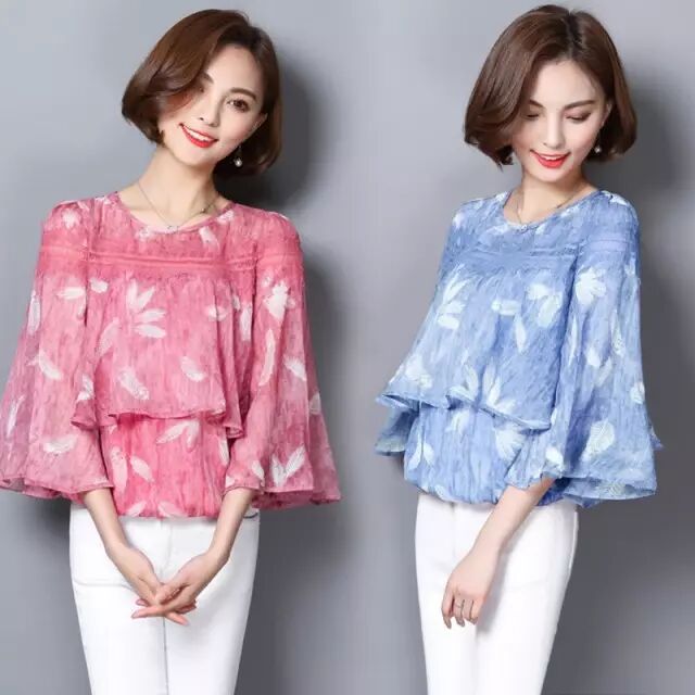 时尚百搭纯色2017年春季雪纺衫长袖修身圆领