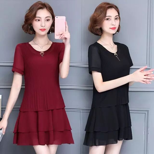 14 修身显瘦遮肉百褶短袖蛋糕裙