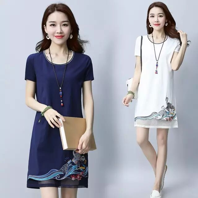2017年夏季连衣裙圆领中腰刺绣气质时尚潮流优雅甜美清纯