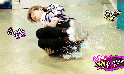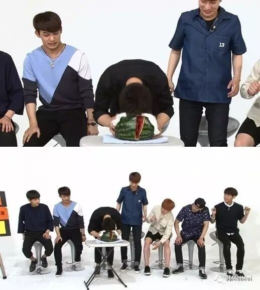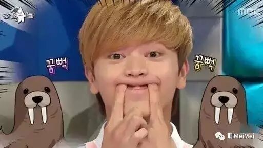 这孩子在“Super Idol Chart Show”(让大众给爱豆们在各种不靠谱的事情上排列序列的节目)频频上榜,模仿的东西真心多,比如动物系列的鲤鱼、鸽子、海豹,神力系列的手劈苹果、头爆西瓜,非生物系列的手机震动,前辈致敬系列的三秒变苏志燮和金东律声带模唱……