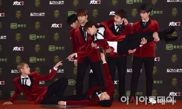 对了,他在的组合BTOB也是一个魔性的团,他们的红毯造型从没我们失望过。
