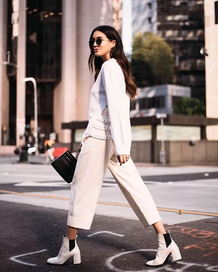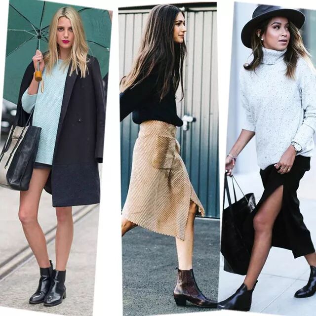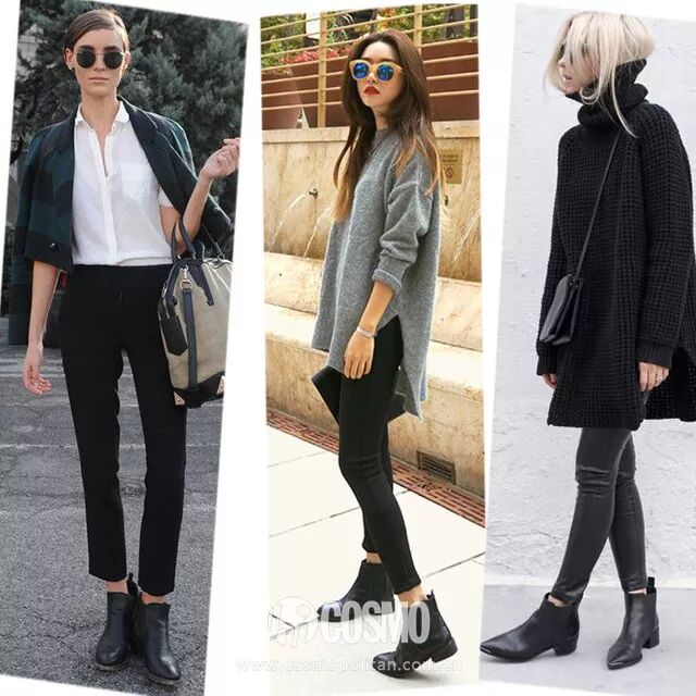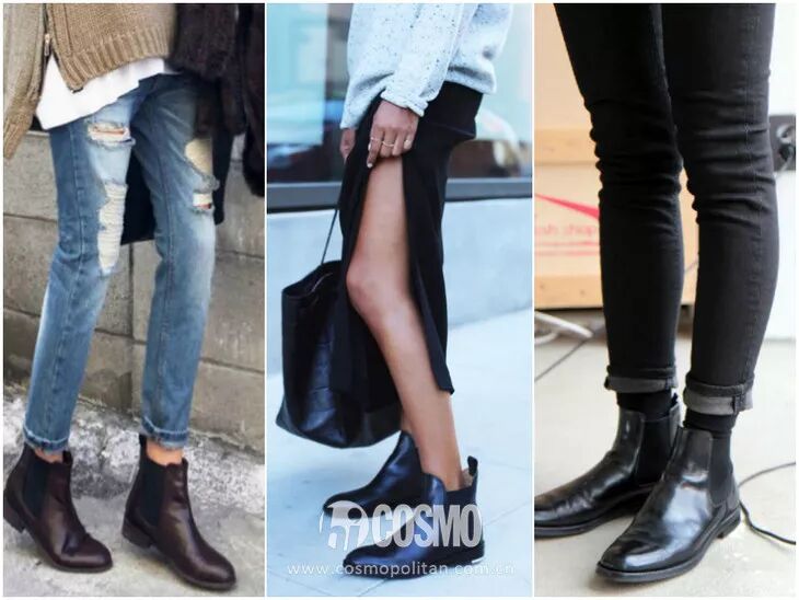 切尔西靴+裤装的搭配利落帅气,而且相当显瘦。上身可以搭宽松款的衣服,上松下紧。