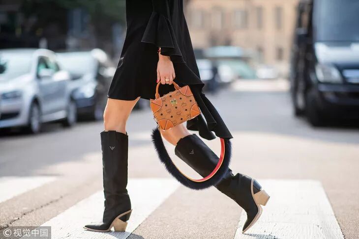 牛仔靴多为皮质尖头坡跟,靴筒边缘两侧高中间矮,形成一个V字,自然而然的拉长了腿部线条。但是现在为了造型百变,靴筒也有了圆形款,但是总体特征还是没变的。