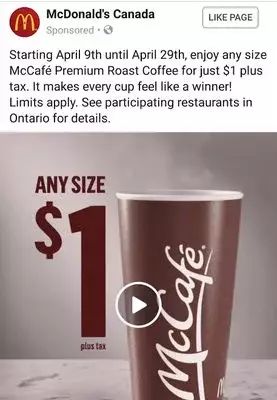 麦当劳加大杯咖啡只要$1刀