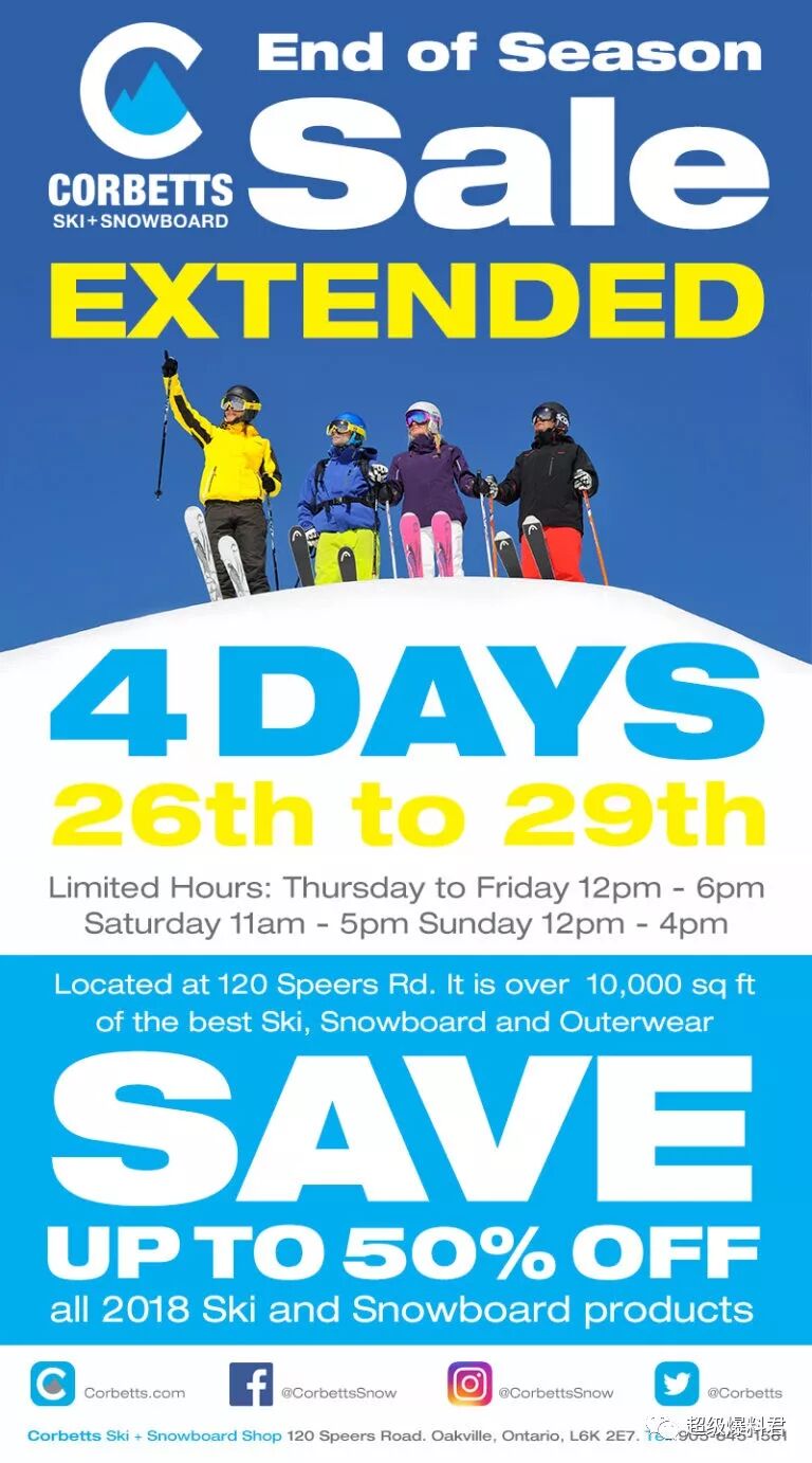 Corbetts滑雪装备开仓特卖会