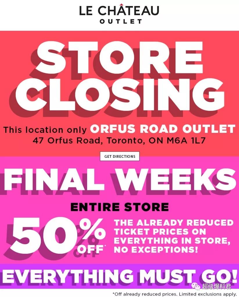 位于Yorkdale附近ORFUS路上的 Le Chateau Outlet 要关店结业了!