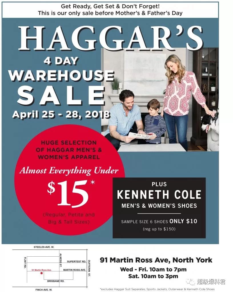 Haggar将会举行春季开仓大减价!5000多款男女服饰清楚特卖,大量货品$15以下,多达80%OFF。