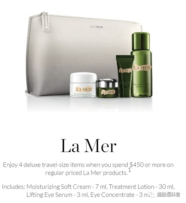 海蓝之谜La Mer:只要税前购满$450的La Mer产品即可获得4件套礼品~