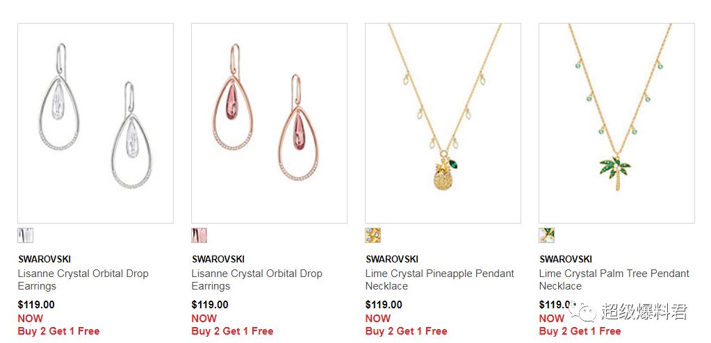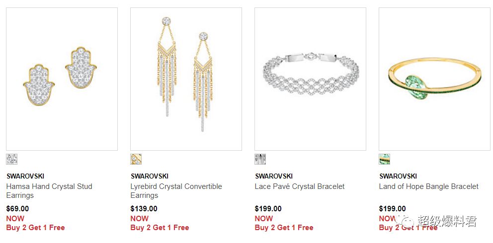 The Bay官网,Swarovski施华洛世奇专区,现在有部分的水晶首饰、耳环、项链、手镯等有买二送一的优惠活动!
