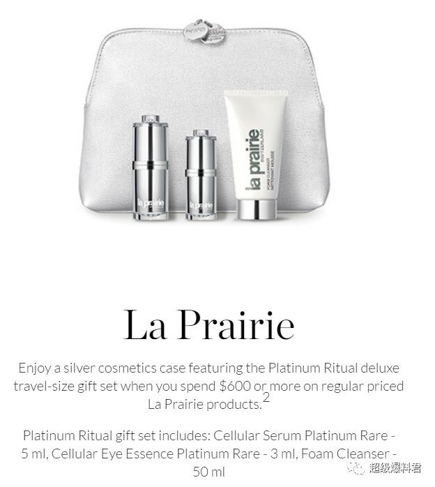 莱珀妮La Prairie: 只要税前购满$600即可获得4件套礼品~