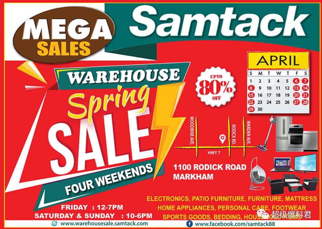 Samtack名牌小家电本次特卖会4月期间将连续几个周末在多伦多举行,折扣低至2折!