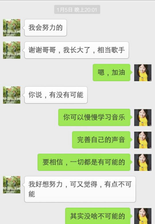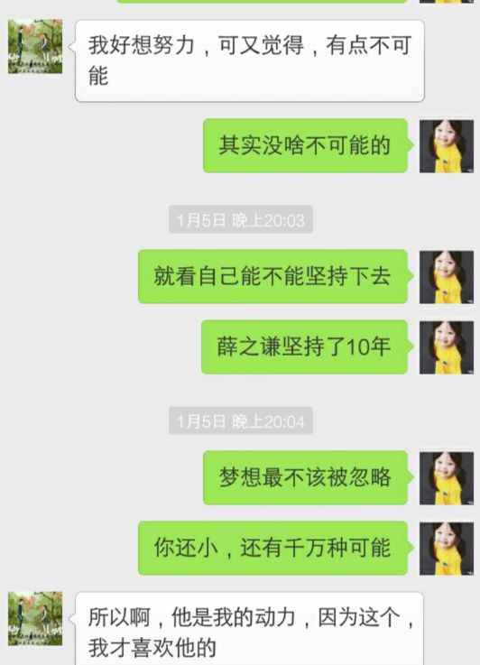我告诉她:“薛之谦坚持了10年,梦想是最不该被忽略的,你还小,有千万种可能”。