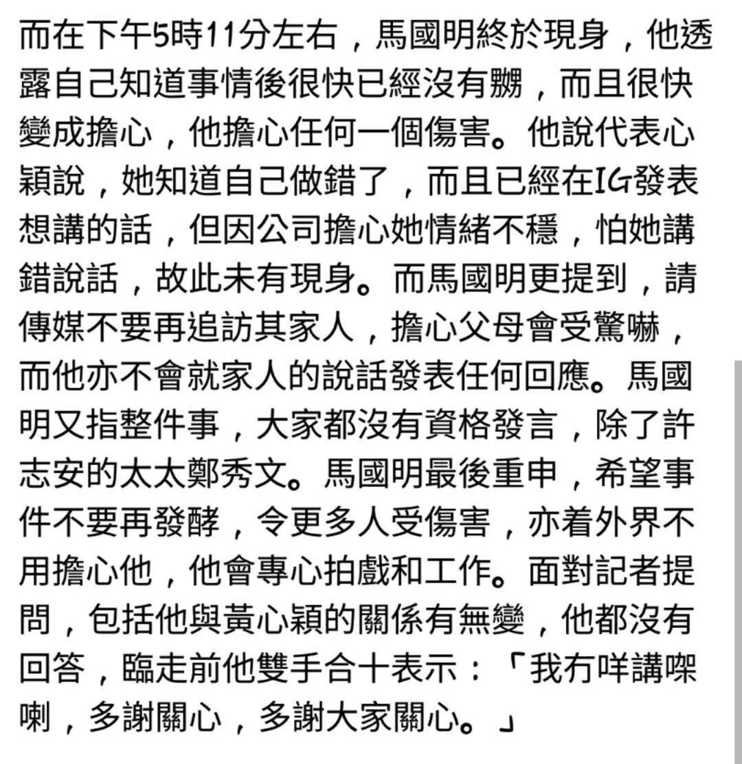马国明的声明很感人,但是你绝不会在这个声明里,读出「原谅」。那是一种替普通朋友说情的冷静与疏离。没有被背叛的愤怒,失爱的挫败,被嘲讽的仇恨,统统没有。