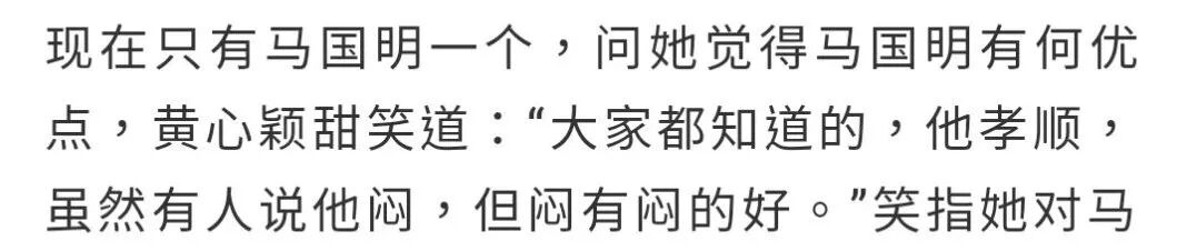 这样一个好男人,黄心颖怎么评价他的呢?「大家都知道,他孝顺,虽然有人说他闷,但闷有闷的好」