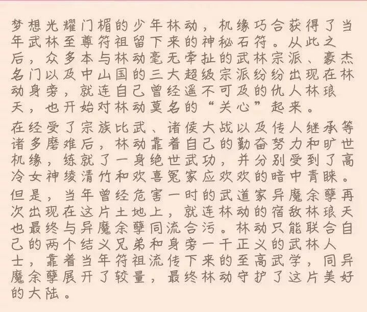 该剧改编自天蚕土豆的同名网络小说,讲述了小镇家族中不受宠的边缘子弟林动,经历无数艰难险阻,一步步战胜奸邪恶人,最终蜕变成长为救世大英雄并收获爱情和友情的热血励志故事。