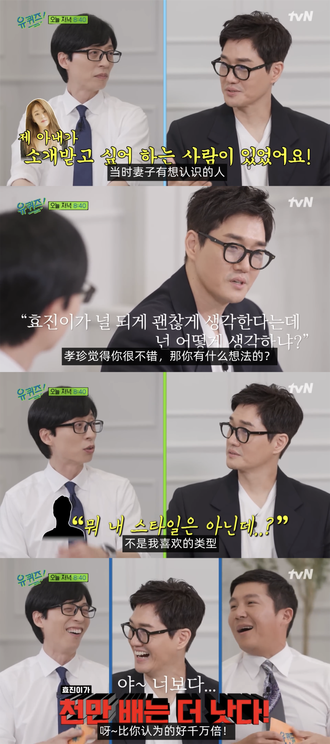 近日演员刘智泰出演了tvN综艺节目《You Quiz On The Block》,该期节目于6月15日播出。在节目中刘智泰不但讲述了电影拍摄的幕后趣事,还提及了与妻子金孝珍相识相恋的爱情故事,引发了大众的关注。