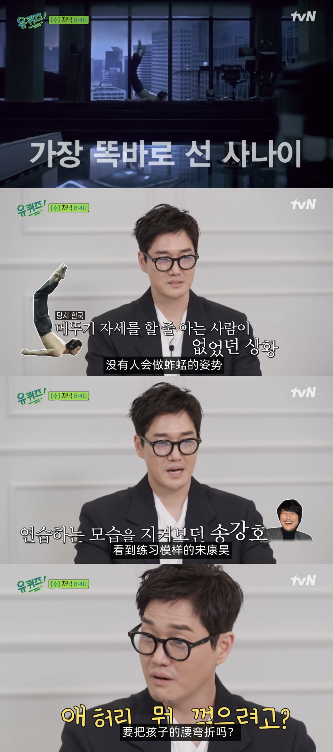 当天的节目中,MC刘在石高度称赞了刘智泰:“2000年代的韩国电影甚至被称为是韩国电影的文艺复兴。像刘智泰一样的演员引领了那个时期”。随后他透露了曾获得多个电影节奖项的惊悚片《老男孩》拍摄过程中的趣事:“本来是没有那个场面的,但导演给我打电话说很希望拍摄一段练瑜伽的戏份。于是我苦练了2个月终于能倒立起来了,结果导演又给我看了蚂蚱的姿势,说希望我做出相同的姿势,还说当时没有人能摆出来。最终我在钢丝绳的帮助下帅气地完成了那段名场面”。