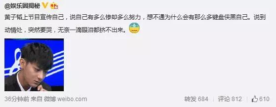 一直都是群嘲体质的黄子韬曾在发布会上大哭,觉得自己被黑的很委屈。