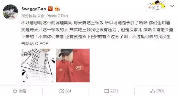 一直以来都非常狂拽酷炫吊炸天的wuli韬韬,回应自己长胖了也很帅,是因为生病吃药而导致的水肿!