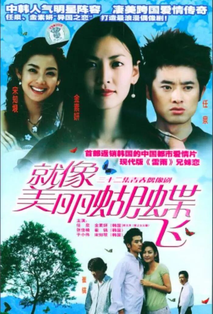 金素妍是为数不多进军中国市场的韩国女演员,早在2004年就和任泉主演了现代爱情剧《就像美丽蝴蝶飞》,次年还参演了武侠电影《七剑》。