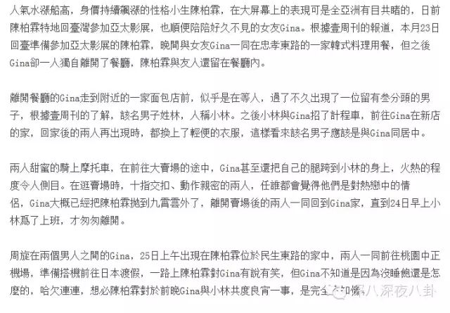 两个人差不多在一起6年,06年底,女方传出劈腿的新闻↓ 蓝后陈柏霖经纪人就跳出来嗦散啦散啦俩人早就分了