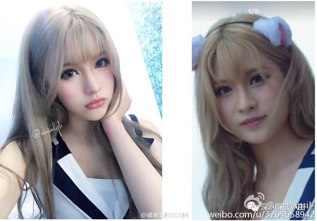 但是呐,小嫩模这边还没完,被扒出来是个照骗P图精,自拍他拍两张脸↓