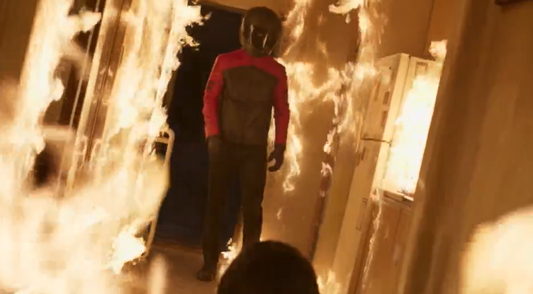 这位仿佛来自另一时空的神秘人不仅有着近乎偏执的正义感,还拥有堪比蜘蛛侠的身手, 竟然能够单手把他们三人一起扔到窗外,从熊熊烈火中逃出生天。