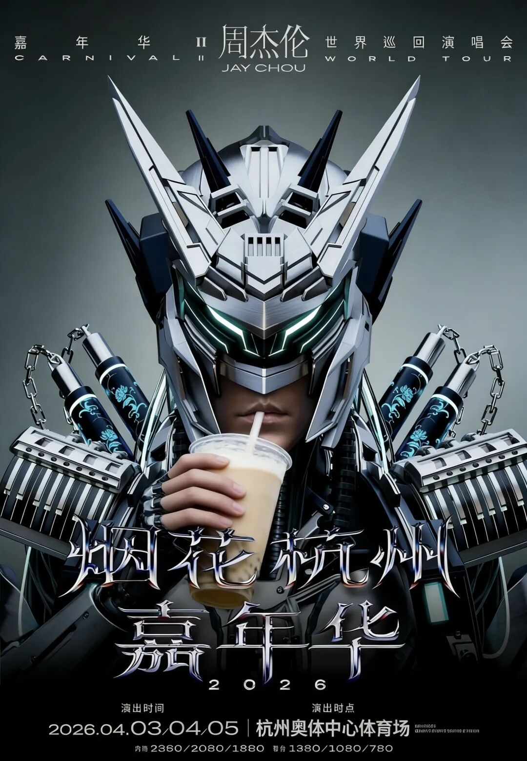 周杰伦2026“烟花杭州嘉年华”演唱会近日官宣,4月3日至5日杭州奥体中心连唱三场!