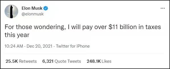 世界首富马斯克将在今年缴纳110亿美元的税款。