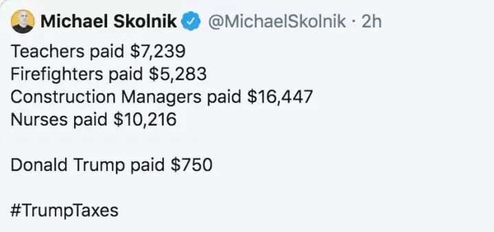 美国人基本上是群情激愤,特朗普15年就交了750美金,为什么普通人要交那么多钱?