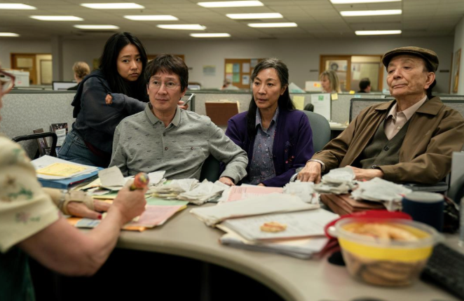《瞬息全宇宙》最后一幕,贝果(黑洞)要将所有多元宇宙吞噬的地点,也选在了美国国家税务局。